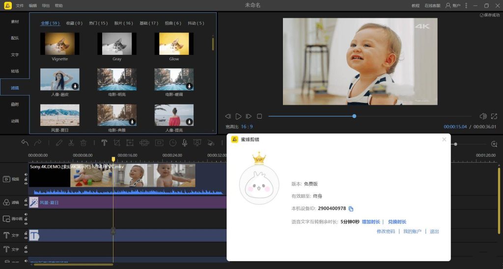 蜜蜂剪辑破解版:由老外修改, 移除登陆,完整破解软件所有VIP会员特权